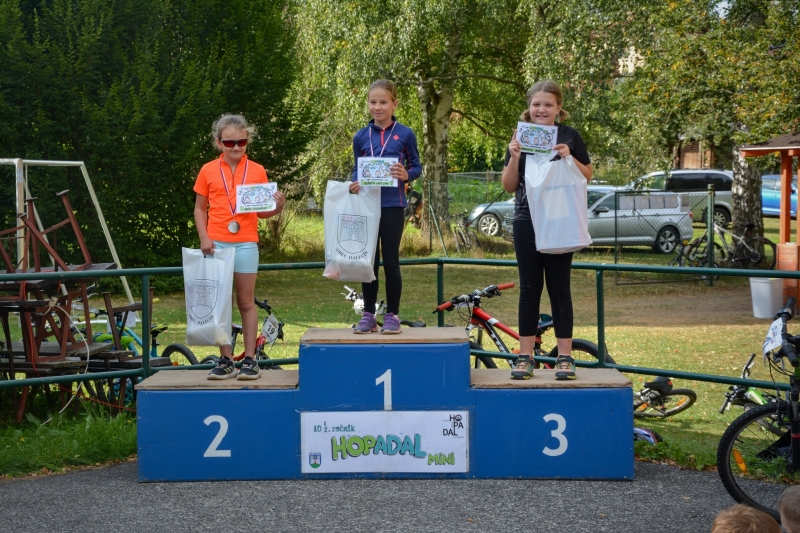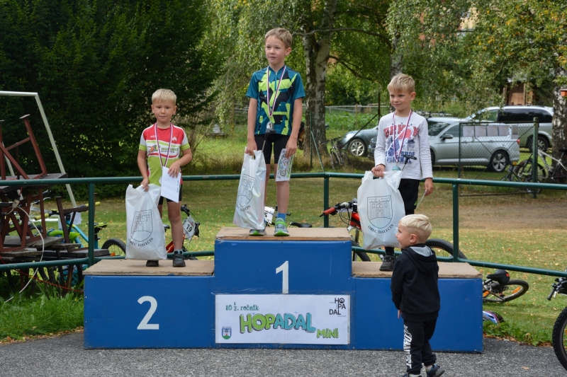 Letošní rok se po desetileté tradici „velkého“ HoPáDalu uskutečnil pouze dětský závod pro cyklisty, - proto se jednalo o 10 a ½ ročník s podtitulem mini. Účast malých cyklistů ale rozhodně nebyla pouze mini, ale doslova rekordní – přijelo nám soutěžit celkem 93 cyklistů. Nově jsme závoďáky vyčlenili do samostatné kategorie – přijelo jich pouze 10, naprostá většina se tak utkala v souboji klasických „amatérských“ jezdců. Děti byly hodnocené zvlášť i na holky a kluky. Byla připravená trať na rovince po Bahnech (s počtem kol podle věku) a potom přibližně 3 kilometrová trať do blízkého okolí. Tuto kopcovitou trať jeli profíci a nakonec ji s grácií zvládli i nejstarší amatérští jezdci. A protože byla velká trať mnohem náročnější, než jezdit po rovince, nakonec jsme ohodnotili cenami všechny závodníky z těžké tratě. Na medailových pozicích se umístili tito místní bikeři: Tadeášek Vilím, Filípek Kadlec, Eliška Černá, Maruška Bayerová, Dominiček Jílek, Tobík Vetešník, Dominička Zbytovská, Ondra Tomášek, Markétka Bártová, Tomík Oliva i Tomík Oliva, Maty Kadlec, Davča Horáček, Štěpa Jež, Mára Jež, Natánek Erdinger.