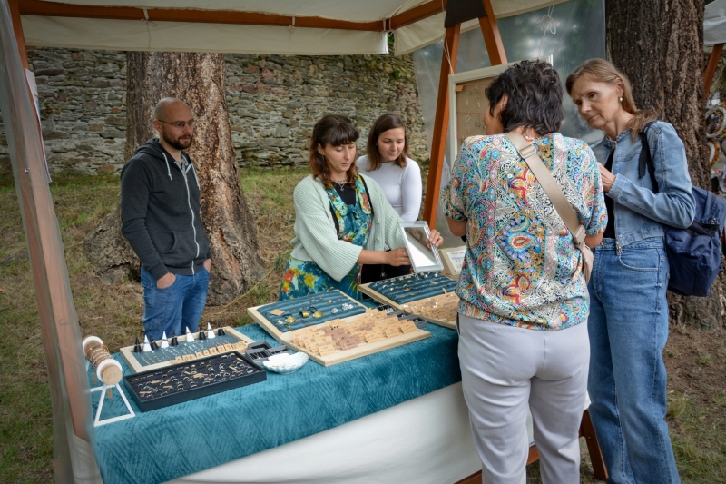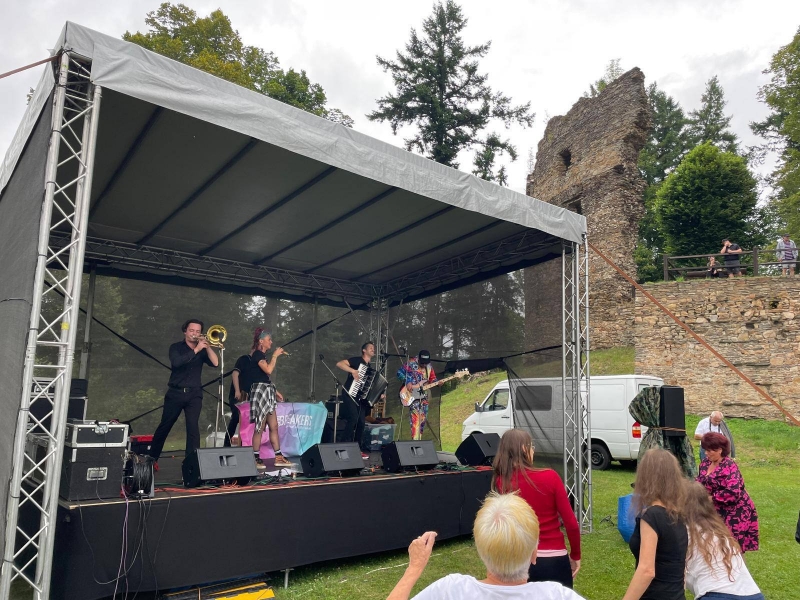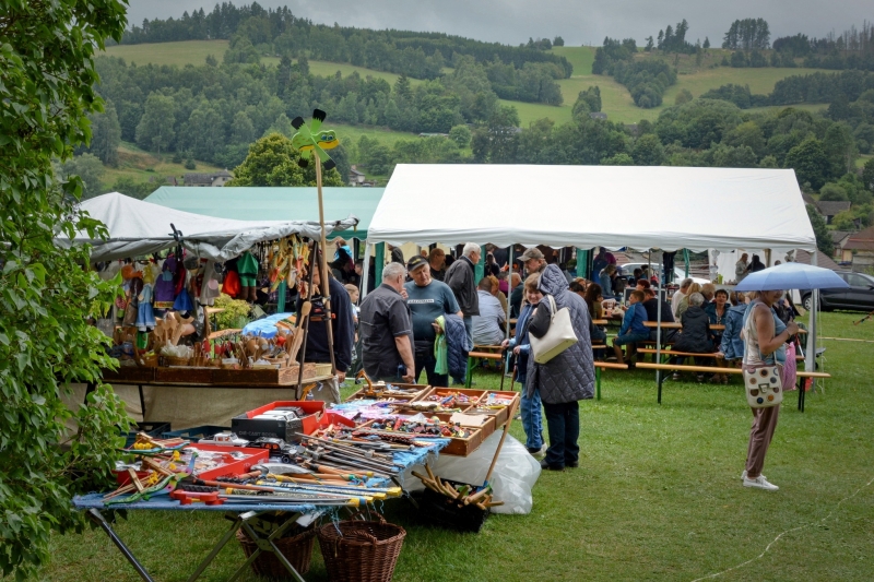 „Když je na vítochovskou pouť hezky, na dalečínskou je škaredě.“ Tuto místní „pranostiku“ zná skoro každý. A letošek doslova potvrdil její platnost. Na tu vítochovskou bylo krásné počasí, ani deštíček. A na tu dalečínskou už předpovědi slibovaly škaredý víkend plný deště a zimy. Nakonec to nebylo úplně zlé. Na páteční zábavu déšť nebyl, v sobotu pršelo, ale nic hrozného. A v neděli bylo upršené celé dopoledne a trochu i odpoledne. Loutkař pan Hrubec se spolu s dětmi musel přestěhovat na pódium a do stanu a i návštěvníci jarmarku se více zdržovali pod stany. Ale stánkaři byli připraveni (je fain, že sledují předpovědi počasí ) a tak, vybaveni různými plachtami a igelity, prodávali všemožné dárečky, šperky, koření, šťávy, perníčky, obrázky, dřevěné výrobky, hrnečky a další různé věcičky. Během odpoledne se vyčasilo a zejména na poslední letošní kapelu (MoveBreakers) bylo hradisko takřka zaplněno, dokonce se nám zaplnil i „taneční parket“ před podiem. První kapelou byla netradiční dechová hudba – Venkovská kapela. A druhou kapelou byla Lucy and HangOver. Každá kapela hrála jiný styl, a proto si zde každý našel své. Co se týká večerních zábav – zahrál nám BlackJack, Airback a Rockery. Všechny kapely byly takového rockového tanečního rázu – pro pouťové trsání tak akorát. Budeme se na pouťové veselí těšit zase za rok. To bude pouť vycházet na neděli 26.7.2026.