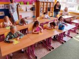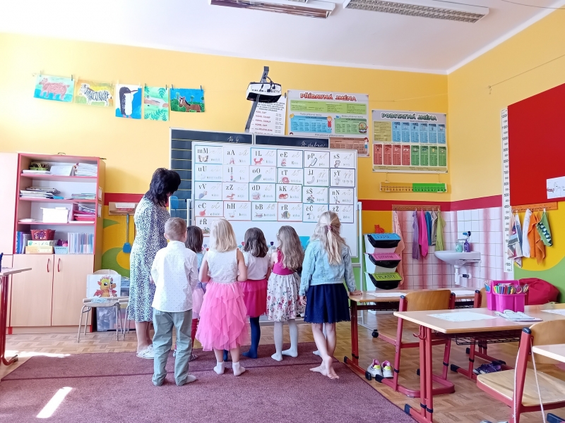 V pondělí 14. 4. 2025 odpoledne se na naší základce uskutečnil zápis do první třídy. Přišlo 6 slečen a 1 mladý muž, tedy všichni předškoláci z místní školky. Prošli si všechny tři třídy a program si pro ně připravily 3 paní učitelky. Celý zápis probíhal hrou, takže děti nejspíš ani nepostřehly, že si je paní učitelky tak trochu zkouší. Všichni byli moc šikovní, a proto není divu, že byly všechny děti přijaté. A tak nastoupí do první třídy všech 6 květinek a jeden jejich ochránce.